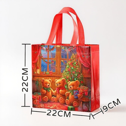 Gran oferta de fábrica, promoción, bolsa de compras barata, bolsa de regalo, bolsa no tejida de laminación reutilizable, bolsa con asa de dibujos animados de Apple de Nochebuena