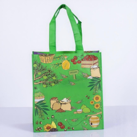 Ventas al por mayor, tienda de comestibles verde Premium, publicidad, laminación, bolsa de compras de frutas y alimentos no tejida, bolsa ecológica, bolsa de regalo con logotipo personalizado